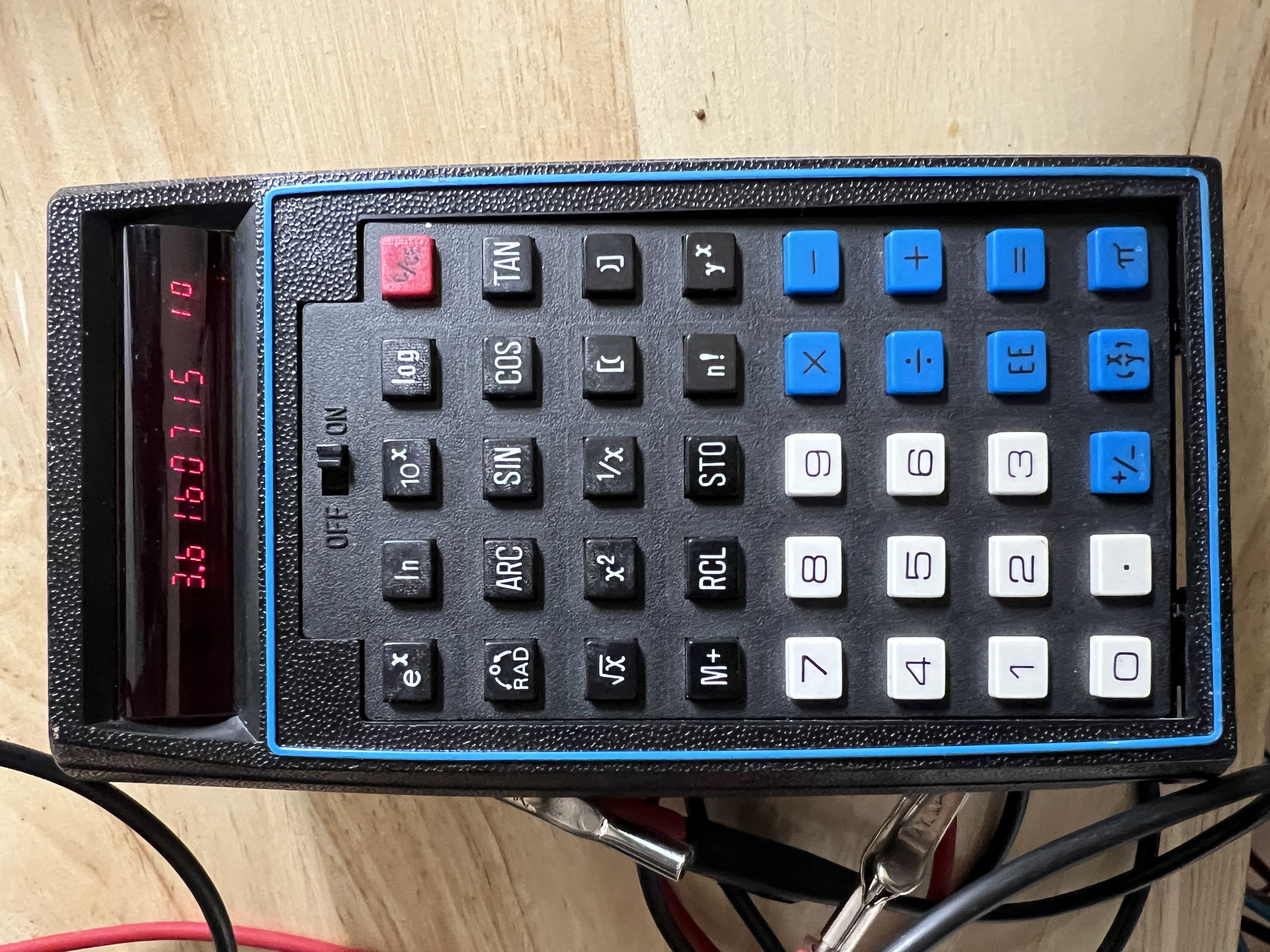 | Commentaire | Batteries retirées, alimentation 3V DC externe sur plots batterie. Affichage original avec exposant de plus petite taille que la mantisse |
