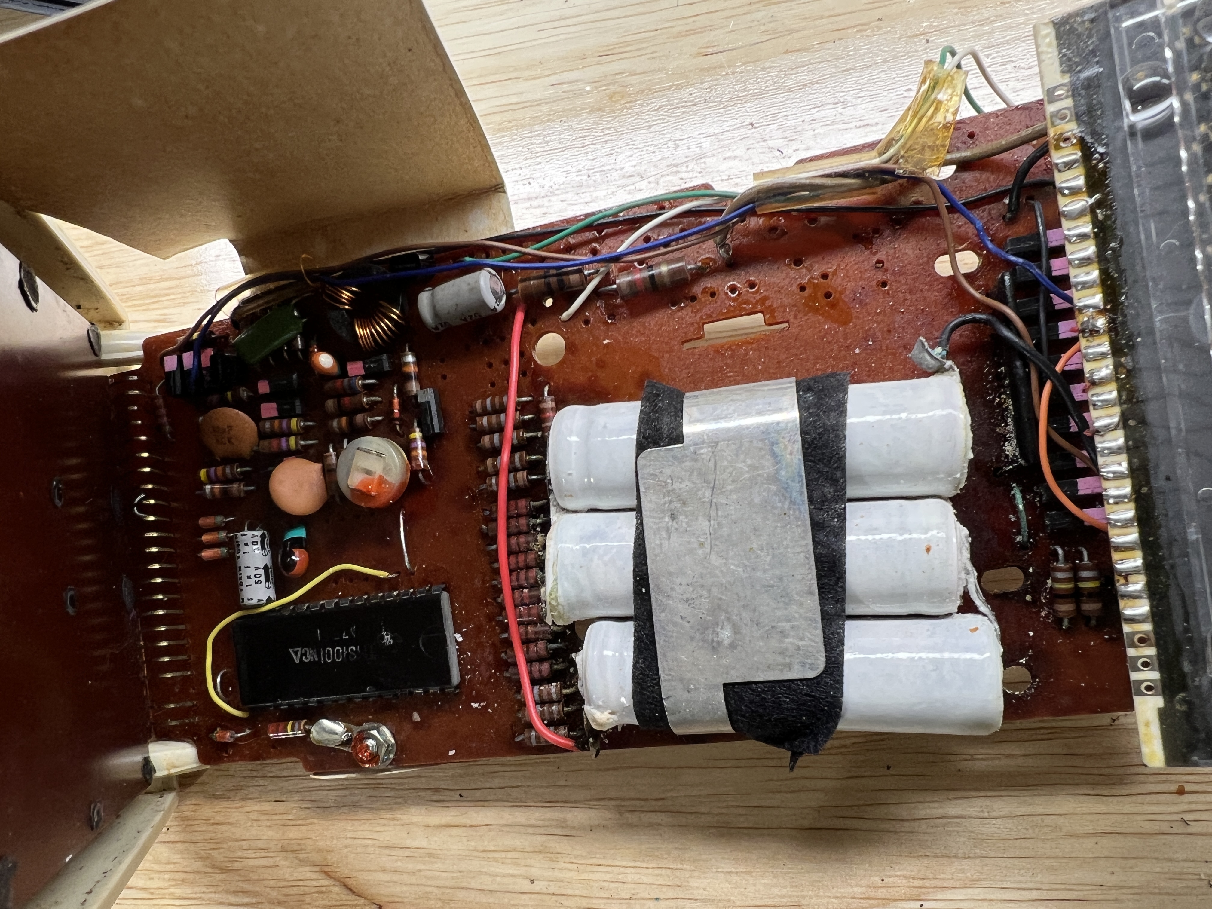 | Etat | Partiellement fonctionnelle : KO en alimentation via le jack externe mais s'allume en l'alimentant en 3,8V sur la connexion batterie (fil rouge interne et fil noir jack)? Des digits non allumés toutefois mais calculs corrects |